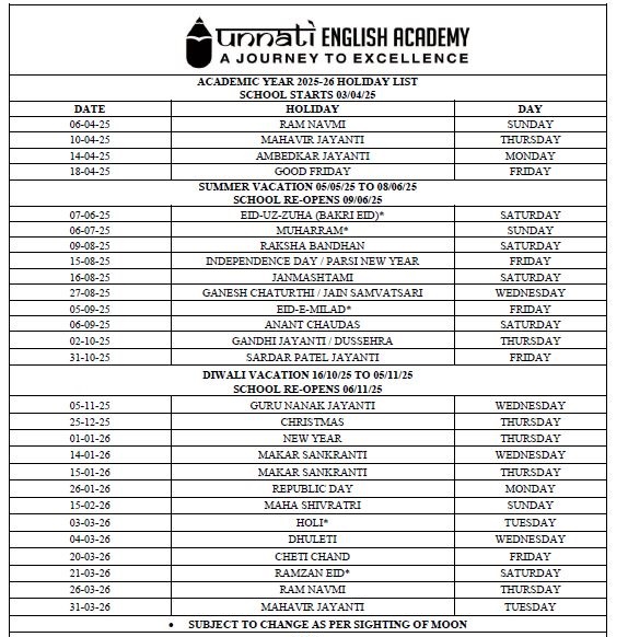 Holiday List 2025 - 26
