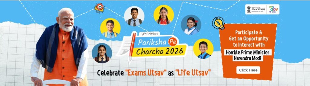 Pariksha Pe Charcha 2026 Dec 18, 2025 Participate for Pariksha Pe Charcha 2026 Register on the provided link https://innovateindia1.mygov.in/